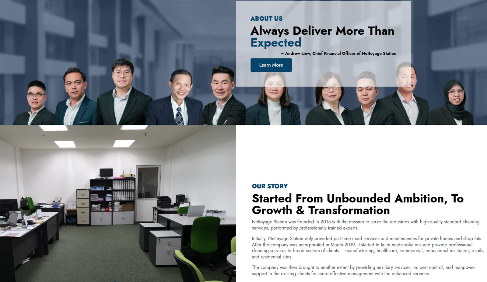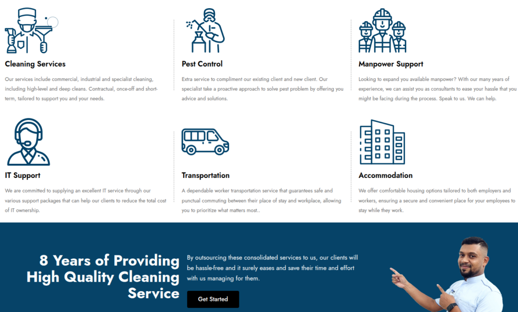 Nettoyage Station, based in Malaysia, is a certified facility service provider offering cleaning, pest control, manpower support, transportation, IT Support and accommodation services. Established in 2015 and ISO-certified since 2020, they serve commercial, healthcare, industrial, and residential sectors.